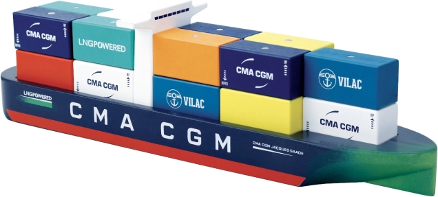 Acest vas din lemn, cu un design stilat, aduce în camera copilului lumea marilor porturi. Datorită celor 18 containere magnetice, copiii încarcă și descarcă ușor marfa, dezvoltându-și imaginația și coordonarea. Modelul este inspirat de un vas real propulsat cu LNG și a fost creat în colaborare cu CMA CGM.