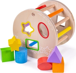 Acest cilindru din lemn cu forme este o alegere excelentă pentru prima jucărie educativă. Piesele geometrice colorate se introduc în orificiile corespunzătoare, antrenând astfel gândirea logică, răbdarea și precizia prizei. La rostogolire pe podea, jucăria produce sunete plăcute de pocnit, care motivează la noi descoperiri.
