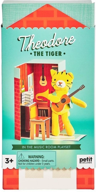 Tigrul de pluș Theodor de la Petit Collage este prietenul ideal pentru micii muzicieni. Copiii pot aranja propriile note după instrucțiuni și pot cânta împreună cu Theodor melodii reale. Datorită ambalajului ingenios, care se transformă într-un studio 3D, ia naștere o scenă captivantă pentru joacă și pentru povestit.