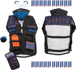Vestă tactică completă cu accesorii pentru jucătorii Nerf. Fii pregătit pentru următoarea bătălie Nerf cu o vestă echipată cu mult spațiu pentru gloanțe și accesorii.