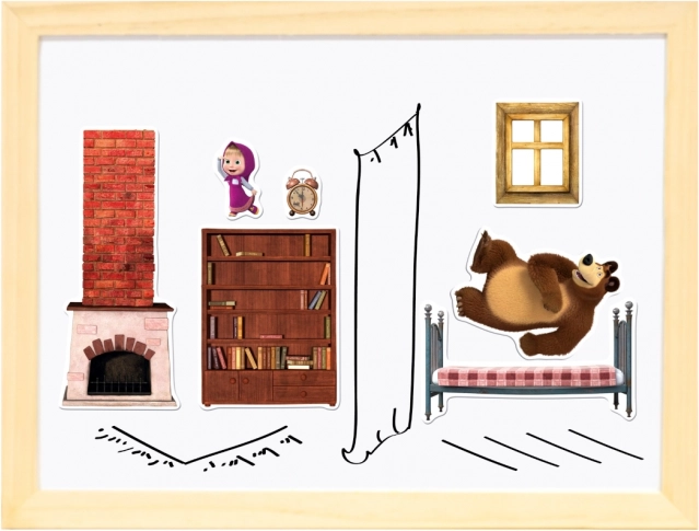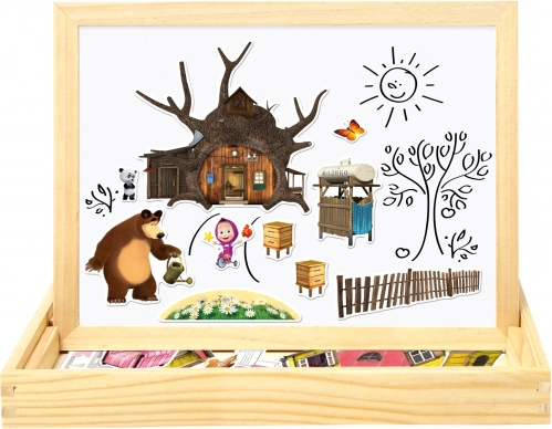 Tablă magnetică pe două fețe cu motive din popularul serial „Masha și Ursul” oferă ore nelimitate de distracție și creativitate. Tablă este utilizabilă pe ambele părți: