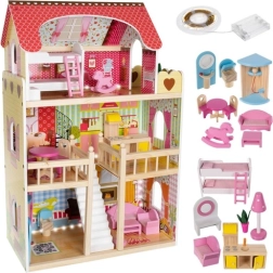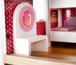 Căsuța include iluminare LED, ce poate fi poziționată după dorințele copilului, intensificând farmecul unei lumi imaginare. Este împărțită pe trei niveluri conectate prin scări albe fermecătoare și oferă cinci camere și un balcon, asigurând suficient spațiu pentru o familie de păpuși de patru membri.