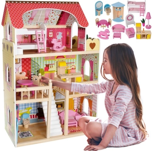 Căsuța din lemn pentru păpuși este mediul de joc perfect pentru copiii dumneavoastră. Cu o înălțime de 90 cm, este unul dintre modelele cele mai mari de pe piață, perfectă pentru joacă, chiar și pentru copiii mai mari. Construcția din lemn de calitate asigură stabilitate și siguranță, astfel că nu se va răsturna în timpul jocului.