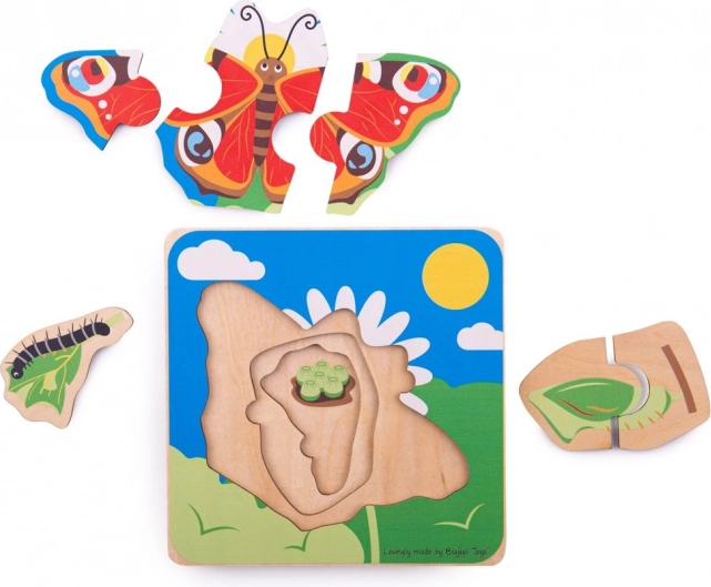 Acest puzzle din lemn, pe straturi, este un instrument didactic ideal pentru micii exploratori. Copiii descoperă pas cu pas cum dintr-un ou apare omida, apoi crisalida și, în final, un frumos fluture. Datorită celor patru straturi și pieselor robuste, asamblarea este intuitivă și distractivă.