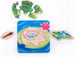 Descoperiți ciclurile de viață ale broaștei cu acest puzzle stratificat de la Bigjigs Toys. Puzzle-ul are 4 straturi și conține 7 piese, care îi va distra și educa pe copii în același timp. Fiecare strat arată o altă fază a evoluției și facilitează înțelegerea procesului de transformare pentru copii.