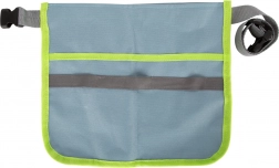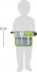 Borseta textilă cu buzunare practice păstrează uneltele în siguranță. Cureaua reglabilă cu cataramă cu clic se adaptează ușor pe măsura copilului.