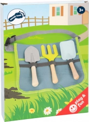 Acest set ingenios combină o borsetă confortabilă cu unelte practice, pentru ca cei mici să poată planta, afâna și transporta pământul cu ușurință. Uneltele metalice cu margini netede și mânerele din lemn sunt adaptate mâinilor mici și rezistă ritmului entuziast al copiilor. Borseta cu curea reglabilă ține uneltele la îndemână și permite mișcare liberă și sigură.