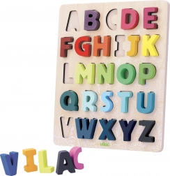 Puzzle-ul de inserție Alfabet este nu doar educativ, ci și un element decorativ pentru camera copiilor. Cu literele viu colorate în culorile curcubeului, copiii se pot distra ore întregi învățând în același timp. Puzzle-ul este potrivit pentru copii de la 2 ani și este ambalat într-un săculeț textil practic.