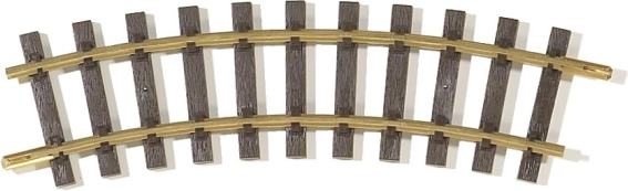 Șină curbată perfect prelucrată cu reproducere detaliată a traverselor din lemn în culori realiste. Potrivită pentru modele de căi ferate la diferite scări.