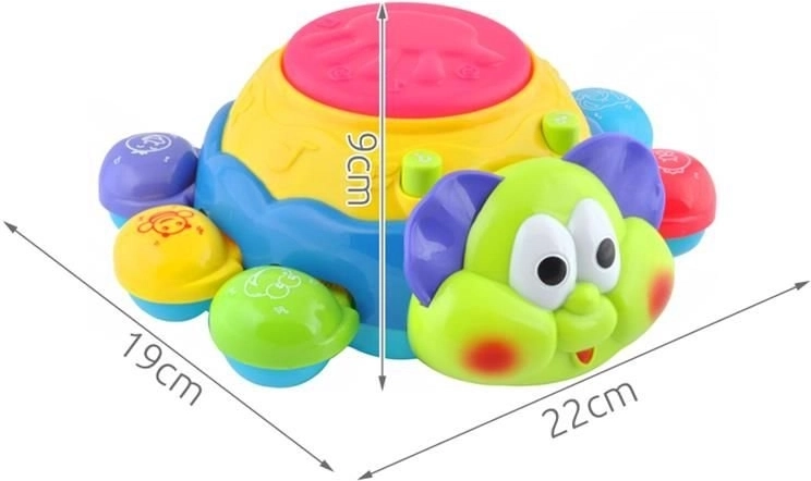 Jucăria este echipată cu efecte sonore și luminoase. Sunetele și melodiile dezvoltă sensibilitatea muzicală și auzul perfect. Această jucărie are un senzor încorporat, astfel încât se întoarce în altă direcție când întâlnește un obstacol. Partea superioară, la apăsare, redă sunete și melodii. Butonul semn de întrebare inițiază un quiz în care jucăria pune o întrebare despre culoare sau numele animalelor.