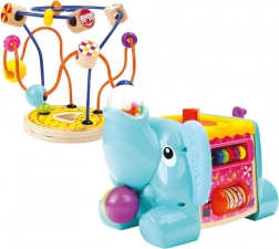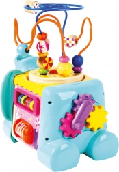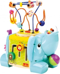 Acest cub motric multifuncțional în formă de elefant este o jucărie educativă ideală pentru cei mici. Datorită elementelor colorate și activităților variate, copiii exersează în mod natural motricitatea fină, percepția spațială și abilitățile senzoriale. Partea superioară este formată dintr-un labirint motric cu mărgele, iar lateralele sunt decorate cu roți dințate, piese glisante și alte sarcini istețe.