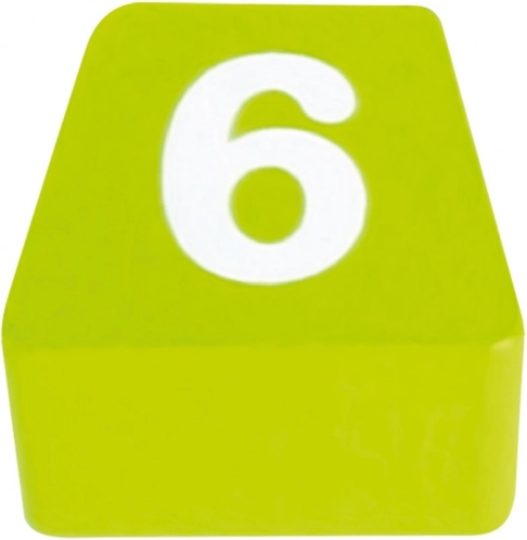 Piesele multicolore cu cifre și puncte pe partea inferioară sprijină recunoașterea formelor, a culorilor și primele calcule.