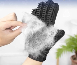 Această mănușă inteligentă combină confortul palmei cu eficiența unei perii. Partea activă, cu proeminențe dese din TPR (cauciuc termoplastic), acoperă uniform întreaga suprafață a mănușii, astfel încât la fiecare mângâiere îndepărtează cu blândețe părul desprins, care se prinde între proeminențe – fără mizerie inutilă și fără praf care să zboare.