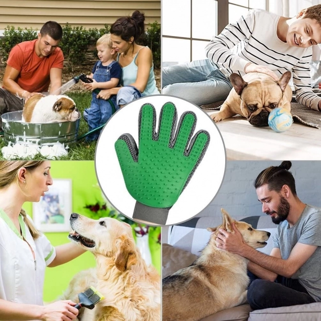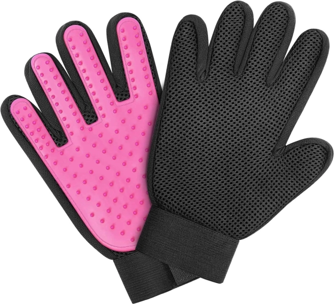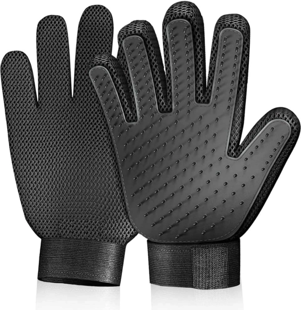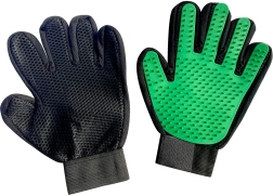 Proeminențele dese din TPR acoperă întreaga suprafață activă a mănușii, captează părul desprins și, totodată, masează plăcut pielea animalului.