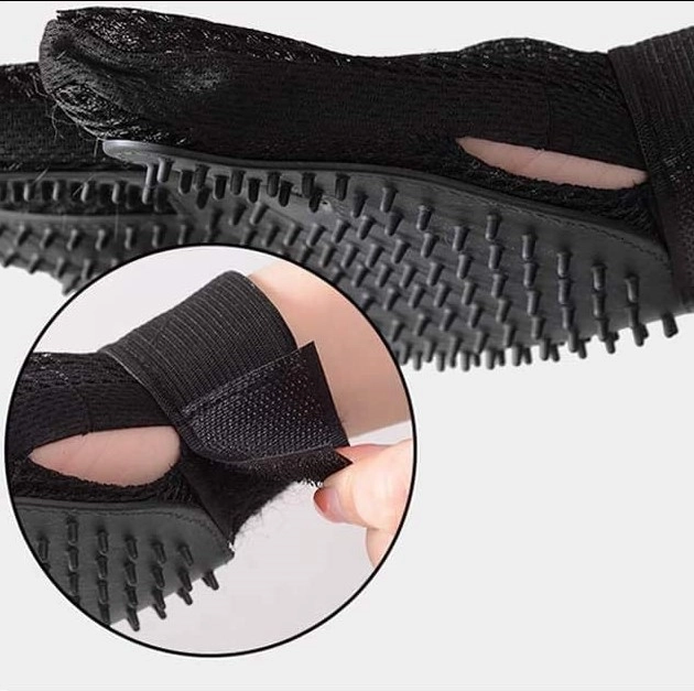 Închiderea reglabilă cu arici asigură stabilitate și aderență la mână. Mănușa se potrivește mâinilor de dimensiuni diferite și nu alunecă în timpul perierii.