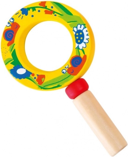 Această lupă de calitate pentru copii combină un mâner solid din lemn cu un element din plastic ușor, pentru a fi sigură și confortabilă pentru mâinile mici. Ilustrațiile vesele cu insecte și flori îi motivează pe copii să descopere detaliile lumii înconjurătoare – de la flori până la micii gândăcei.