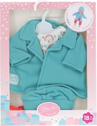 Ținuta Petitcollin Arthur transformă orice păpușă de 36 cm într-un partener de joacă elegant. Setul combină hanoracul turcoaz din fleece, bluza veselă cu model, pantalonii scurți roșii și căciulița asortată – împreună creează o ținută atractivă și confortabilă pentru aventurile zilnice.