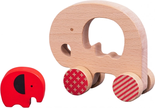 Jucăria dezvoltă abilități prin tras și împins, antrenează prinderea și reprezentarea spațială datorită puiului de elefant care se introduce în deschiderea din centru. Construcția durabilă din lemn masiv de fag asigură o durată lungă de viață și întreținere ușoară.