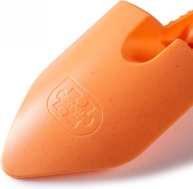 Lopățică ecologică portocalie de la Bigjigs Toys este fabricată din fibre de grâu sustenabile care seamănă cu plasticul, dar sunt mai prietenoase cu planeta. Se curăță ușor și datorită dimensiunii compacte este ideală pentru plajă sau grădină.