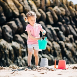 Susține jocul deschis: copiii pot construi castele de nisip, transporta apă, ajuta în grădină sau se juca lângă apă. Găletușa este ușor de transportat și încape în valiză, rucsac sau sacoșă, astfel încât o puteți lua oriunde.