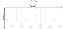Tehnologia LED garantează un consum redus de energie și o durată lungă de viață de până la 35.000 de ore. Datorită transformatorului ușor de conectat, care transformă tensiunea de la 230 V la 31 V siguri, puteți lăsa luminile aprinse fără grijă de a pleca de acasă. Protecția impermeabilă IP44 permite utilizarea cortinei atât în interior, cât și în exterior, fără teama de deteriorare din cauza apei.