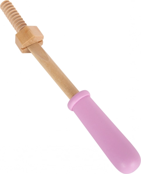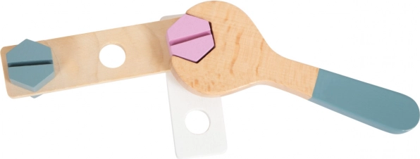 Uneltele din lemn, inclusiv cheia, clichetul, șurubelnița și cheița, permit diverse opțiuni de joc și învățare.