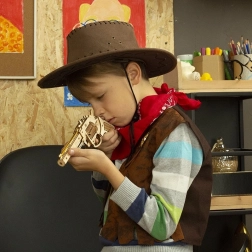 Pe lângă revolver, pachetul include și cinci figurine din lemn care servesc drept ținte. De asemenea, sunt incluse gloanțe de cauciuc, pe care revolverul le poate trage la o distanță de până la cinci metri. Acest model oferă nu doar distracție, ci poate fi folosit și ca element decorativ pe biroul sau pe rafturile dumneavoastră.