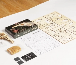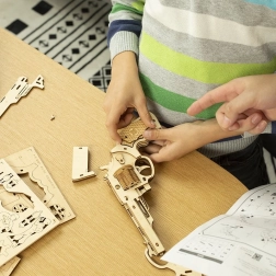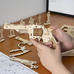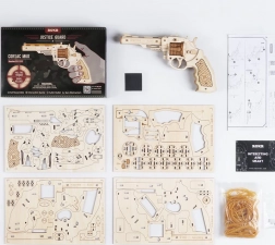 Revolverul Corsac de la Robotime este un puzzle mecanic unic din lemn care va captiva toți fanii proiectelor DIY. Pachetul conține toate piesele necesare pentru asamblarea revolverului, inclusiv 102 piese tăiate cu precizie. Este o modalitate excelentă de a dezvolta creativitatea și abilitatea motorie fină. Asamblarea setului este, de asemenea, foarte simplă, ceea ce îl face ideal chiar și pentru începători.