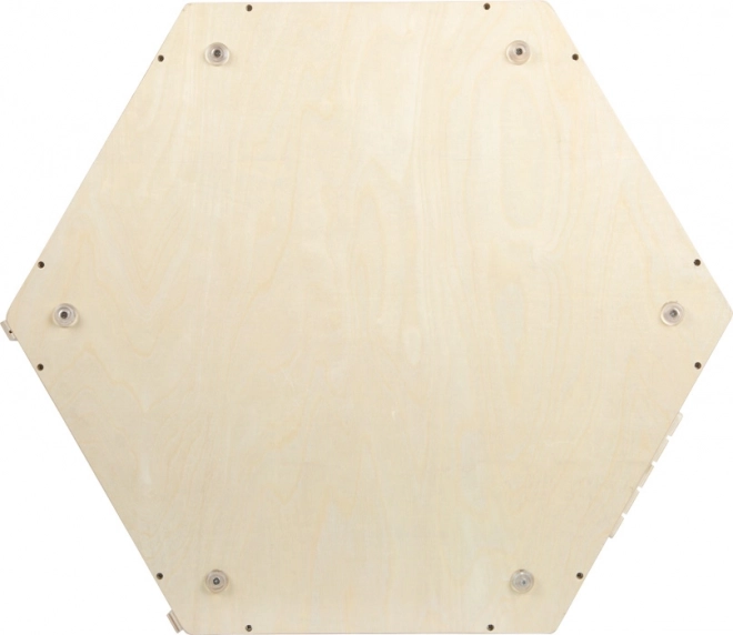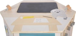 Lemn solid, culori în tonuri delicate și picioare cauciucate care protejează podeaua. Dimensiunile generoase 57 × 50 × 43 cm și înălțimea suprafeței de joc de 32 cm asigură un joc confortabil și o stabilitate excelentă.