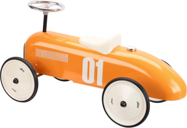 Vehicul de împins pentru copii, cu design vintage de curse, îi va încânta pe micii șoferi de la 18 luni. Are construcție complet metalică, roți silențioase cu bandaj de cauciuc, direcție precisă cu volan și capacitate de încărcare de 20 kg. Vopseaua portocalie metalizată și șezutul alb adaugă stil jocului, atât acasă, cât și afară.