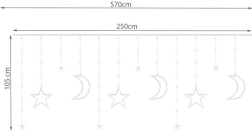 LED-urile speciale consumă energie semnificativ mai puțină și nu emit căldură, făcându-le economice din punct de vedere energetic și cu o durată de viață de până la 35.000 de ore. Lungimea totală a perdelei este de 570 cm, cu o lungime variabilă a firelor suspendate de 105/80/45 cm. Greutatea produsului este de 0,55 kg (inclusiv ambalaj 0,62 kg), ceea ce îl face ușor și simplu de montat.