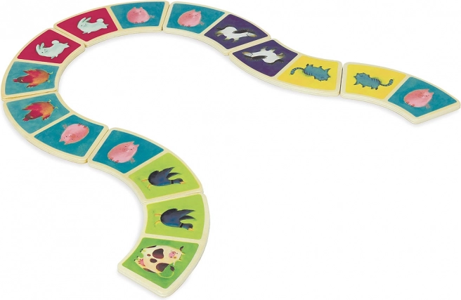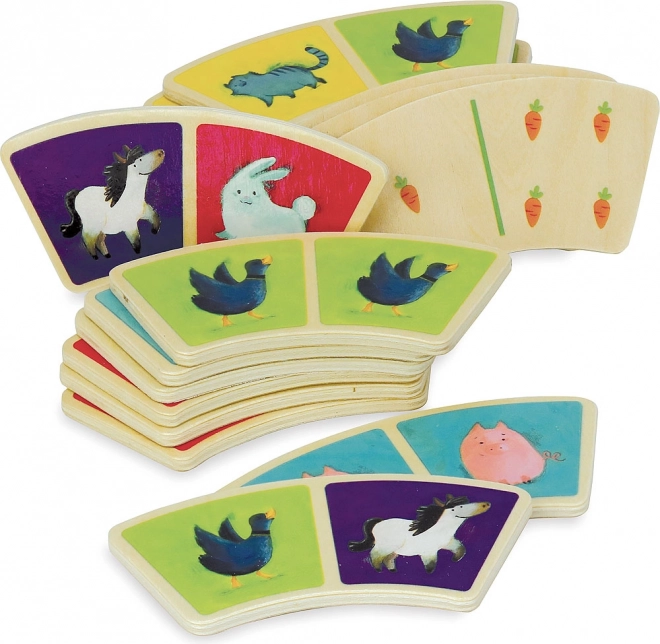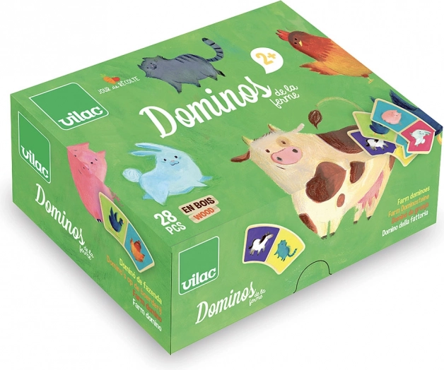 Îmbogățiți jocul copiilor voștri cu acest set original de domino cu un motiv fermecător cu fermă de la marca Vilac. Datorită formei arcuite, piesele de domino nu sunt doar unice, ci și ușor de prins chiar și de mâinile mici ale copiilor. Setul conține în total 28 de piese din lemn care oferă ore nesfârșite de distracție. Jocul de domino contribuie la dezvoltarea atenției, motricității fine și gândirii logice.