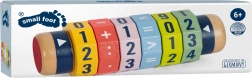 Șase inele rotative cu numere și simboluri permit crearea de exerciții de adunare, scădere, înmulțire și împărțire până la 99 – o cale distractivă de a înțelege bazele.