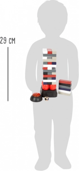 Jocul poate fi jucat și ca un turn instabil clasic, fără suport și fără cronometru, ceea ce îl face o alegere universală pentru copii și adulți. Blocurile din lemn colorate dezvoltă motricitatea fină, concentrarea și răbdarea, în timp ce buzzerul sonor adaugă dramatism. Construcția de calitate din lemn și plastic garantează durabilitate și joc sigur.