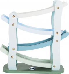Pista în cascadă din lemn SMALL FOOT Blue este un companion grozav pentru copiii de la 18 luni. Mașinuțele pornesc de pe nivelul superior și se avântă pe rampele înclinate în jos, răsturnându-se spectaculos – totul susține concentrarea, răbdarea și bucuria de a descoperi cauze și efecte.