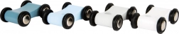 Construcția stabilă, rotunjită, combină lemnul natural și alb cu nuanțe fine de albastru și verde. Setul include 4 mașinuțe (1 natur, 3 colorate) cu roți cauciucate pentru o mișcare silențioasă și lină. Jucăria este ideală pentru joacă individuală sau în grup și se potrivește minunat în camera copiilor.