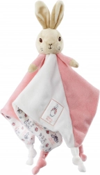 Culorile și modelele iepurașului stimulează dezvoltarea simțurilor copiilor, în timp ce nodul de pe colțul păturii este ideal pentru mestecat.