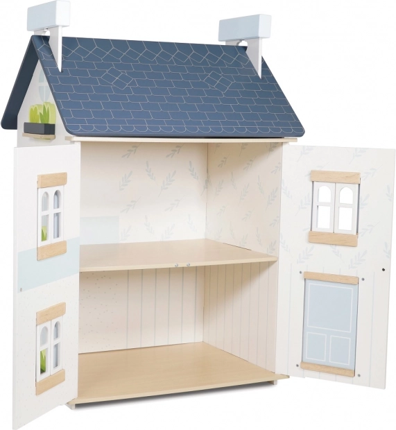 Căsuța pentru păpuși Sky de la Le Toy Van este confecționată din lemn de înaltă calitate cu un accent pe practici de fabricație etice. Este vopsită în alb delicat și albastru pastel, făcând-o un element decorativ pentru orice cameră de copil. Ferestrele deschizabile și construcția pe două nivele oferă nenumărate posibilități pentru jocuri imaginative și dezvoltarea coordonării și abilităților motorii fine.