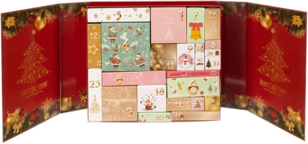 Fiecare cadou este ambalat într-o cutie separată cu număr și motiv de Crăciun, ceea ce adaugă farmec descoperirii zilnice a surprizelor pe tot parcursul perioadei de Advent.