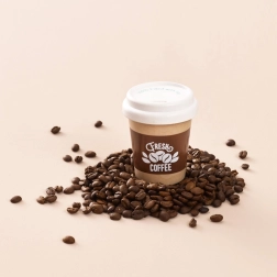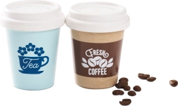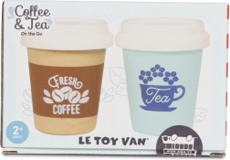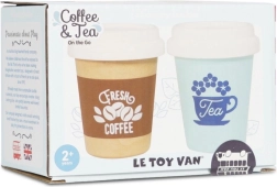 Două pahare finisate cu atenție, „Fresh Coffee” și „Tea”, cu capace albe, oferă jocurilor de cafenea și colțului de ceai un aer autentic.