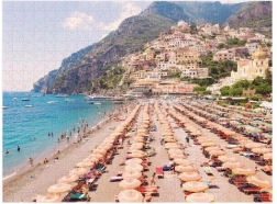 Descoperă farmecul litoralului italian cu puzzle-ul reversibil care aduce două fotografii aeriene impresionante, pline de soare, mare turcoaz și umbrele de plajă iconice. O parte este lucioasă, cealaltă mată, astfel încât poți distinge ușor ce față asamblezi. Datorită tăierii precise, asamblarea este fluidă și satisfăcătoare.