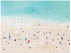 Construcția față-verso aduce bucurie dublă la asamblare. O față surprinde o plajă animată cu vizitatori care se bronzează, cealaltă dezvăluie oceanul turcoaz și lumea subacvatică.