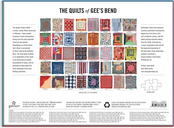 Scufundați-vă în colecția vizual captivantă de modele patchwork inspirate de creațiile femeilor din Gee’s Bend, Alabama. Acest puzzle de 1000 de piese oferă o combinație de culori bogate și motive geometrice, care creează o imagine unică, cu valoare decorativă ridicată.