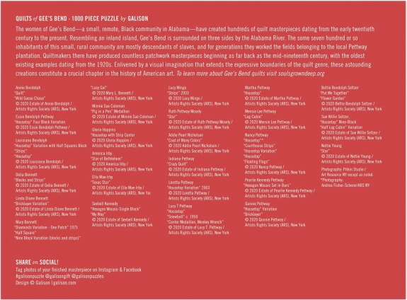 Colecția unică de modele patchwork reflectă bogata tradiție și creativitatea femeilor din Gee’s Bend – rezultând o imagine colorată și vizual puternică.