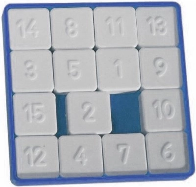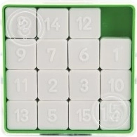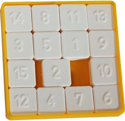 Acest puzzle glisant este ideal pentru toți cei care iubesc provocările și jocurile logice. Conține cincisprezece piese cu numere care trebuie aranjate prin glisare. Scopul este să aduci cifra unu în colțul din stânga sus. Piesele nu trebuie atinse sau scoase din cutie în timpul jocului.