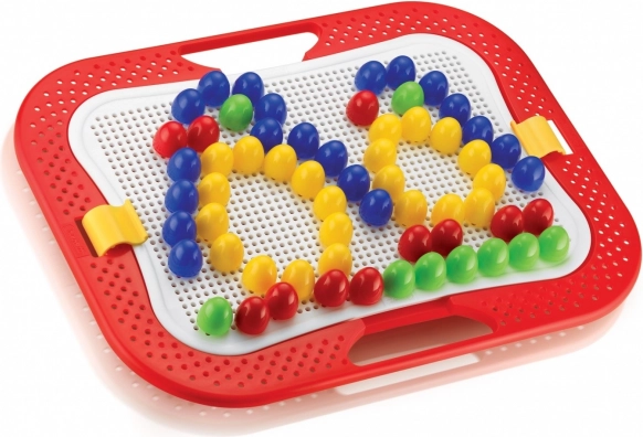 Acest set creativ de mozaic oferă copiilor de la 3 ani posibilități nelimitate de compunere a imaginilor și modelelor. Țepușele mari, ușor de apucat, cu cap rotunjit neted se introduc în orificiile plăcii perforate robuste, montată într-un cadru solid cu mânere. Jocul stimulează imaginația, dezvoltă coordonarea mână–ochi și întărește concentrarea.