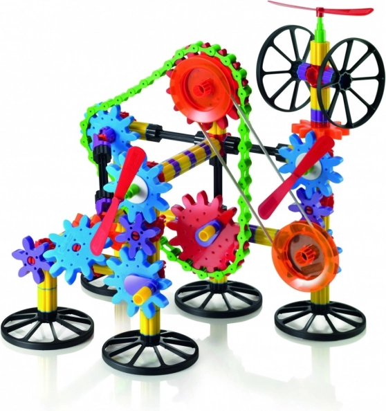 Componente colorate, tije, roți și angrenaje permit crearea de modele simple și complexe. Imaginația nu are limite.