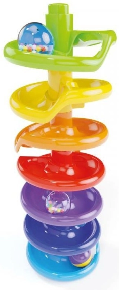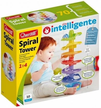 Quercetti Spiral Tower este o jucărie excelentă pentru dezvoltarea abilităților motrice și pentru distracție. Copiii între 1 și 4 ani pot construi turnuri spiralate înalte din piese colorate și pot urmări cum bilele cu elemente zornăitoare se rostogolesc în jos. Această jucărie le captează atenția și susține coordonarea mâinilor și a ochilor.