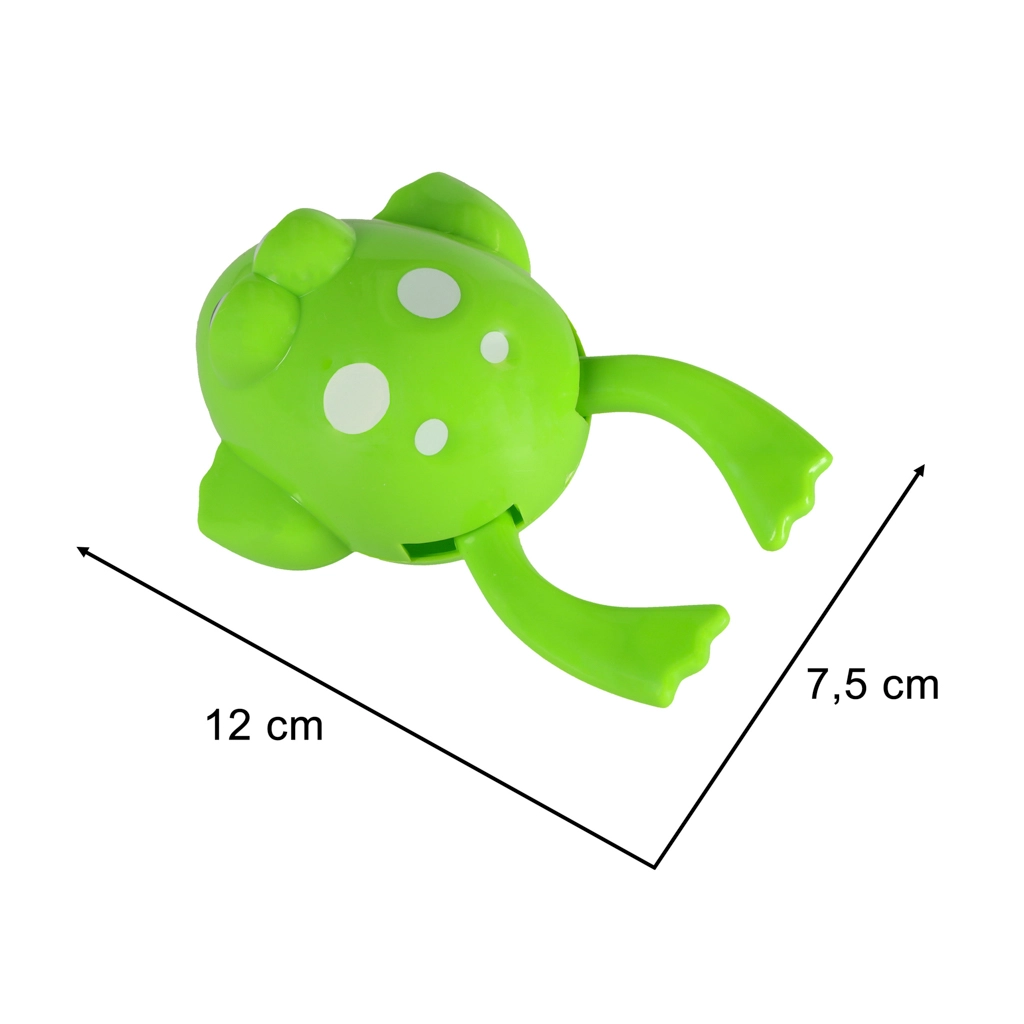 Descoperă jucăria de baie plutitoare broscuță, perfectă pentru distracția copiilor în apă. Ușor de utilizat, fără baterii necesare, fabricată din plastic durabil, dimensiuni: 12 x 7,5 cm.