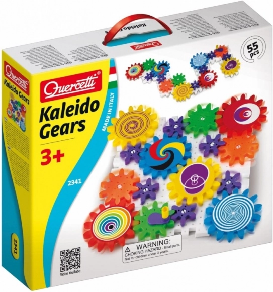 Setul de construcție Quercetti Kaleido Gears este compus din plăci perforate, axe, roți dințate și figuri reprezentând diferite animale și copaci. Datorită unei chei, mecanismul poate fi pus în mișcare, permițându-le copiilor să exploreze principiile mecanice de bază și să învețe înțelegerea cauzei și efectului.